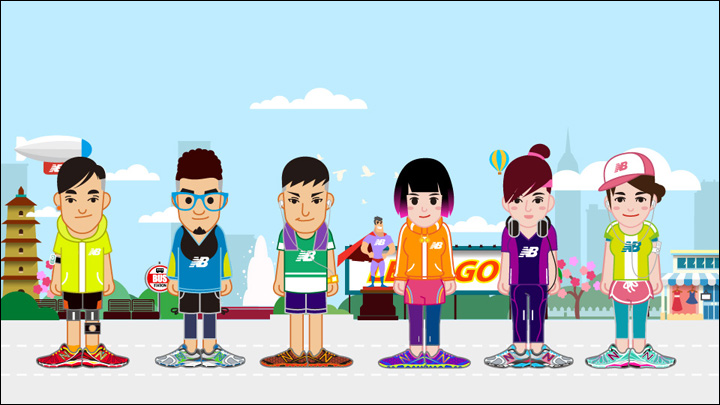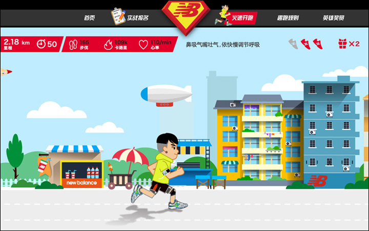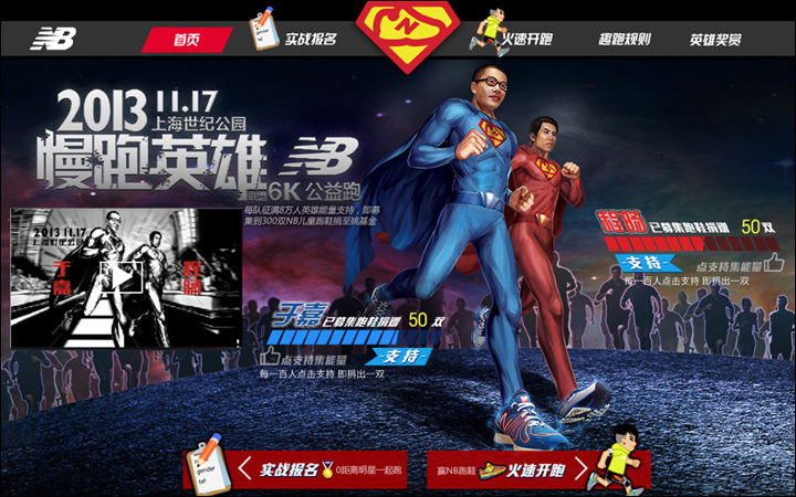 作為其互動(dòng)營銷代理商的Leadinfo(立特整合營銷傳播機(jī)構(gòu))便以英雄扮演的趣味方式為New Balance創(chuàng)意了一款在線趣跑游戲http://newbalance.renren.com,用戶只需用人人網(wǎng)賬號(hào)登錄,即可選擇卡通角色邊跑邊體驗(yàn)身為英雄的快感。