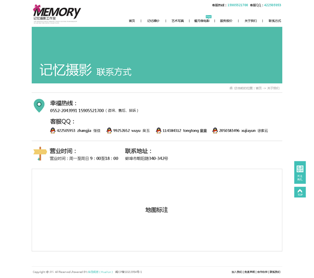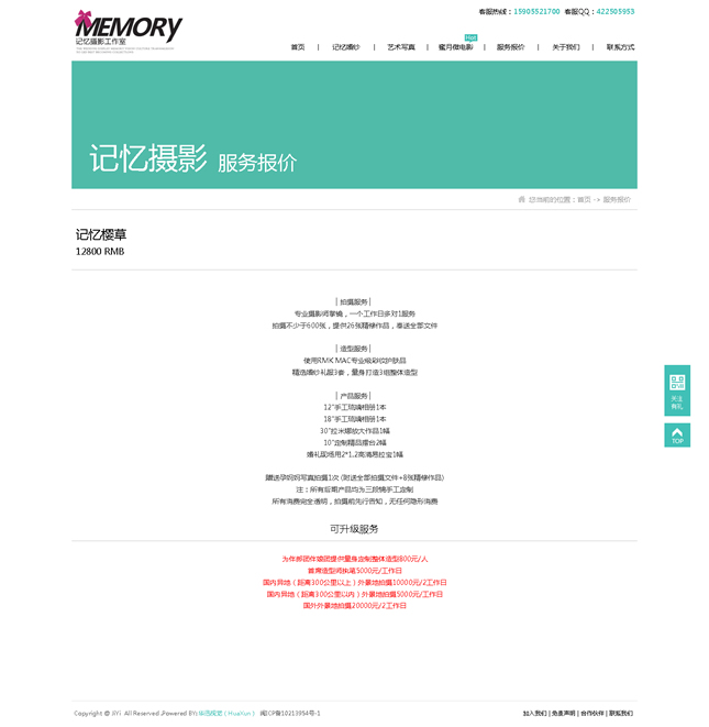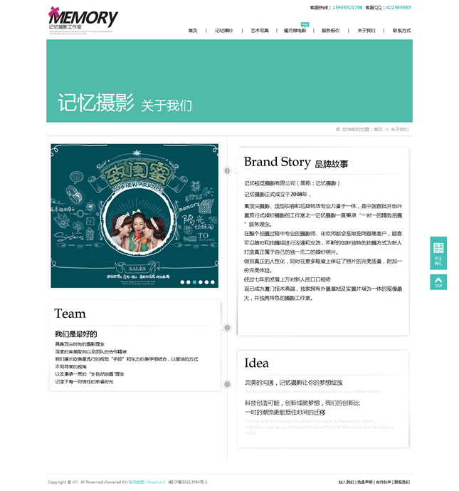 記憶視覺攝影有限公司(簡稱:記憶攝影)記憶攝影正式成立于2008年,集頂尖攝影、造型妝容和后期特效專業(yè)力量于一體,是中國首批開創(chuàng)外景旅行式婚紗攝影的工作室之一記憶攝影一直秉承“一對一的精致拍攝”服務(wù)理念。在整個拍攝過程中專業(yè)的攝影師、化妝師都會至始至終跟隨客戶,顧客可以隨時和拍攝組進(jìn)行溝通和交流,不斷的創(chuàng)新獨(dú)特的拍攝方式為新人打造真正屬于自己的獨(dú)一無二的婚紗照片。做到真正的人性化,同時在更多程度上保證了照片的完美質(zhì)量,附加一份完美體驗。